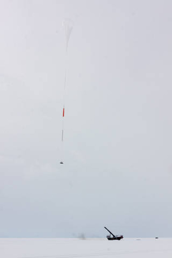 GRIPS, payload launched into the sky on a stadium-size balloon. It will ride the winds around the South Pole for at least two weeks while observing gamma rays from the sun. Credit: NASA – Albert Shih