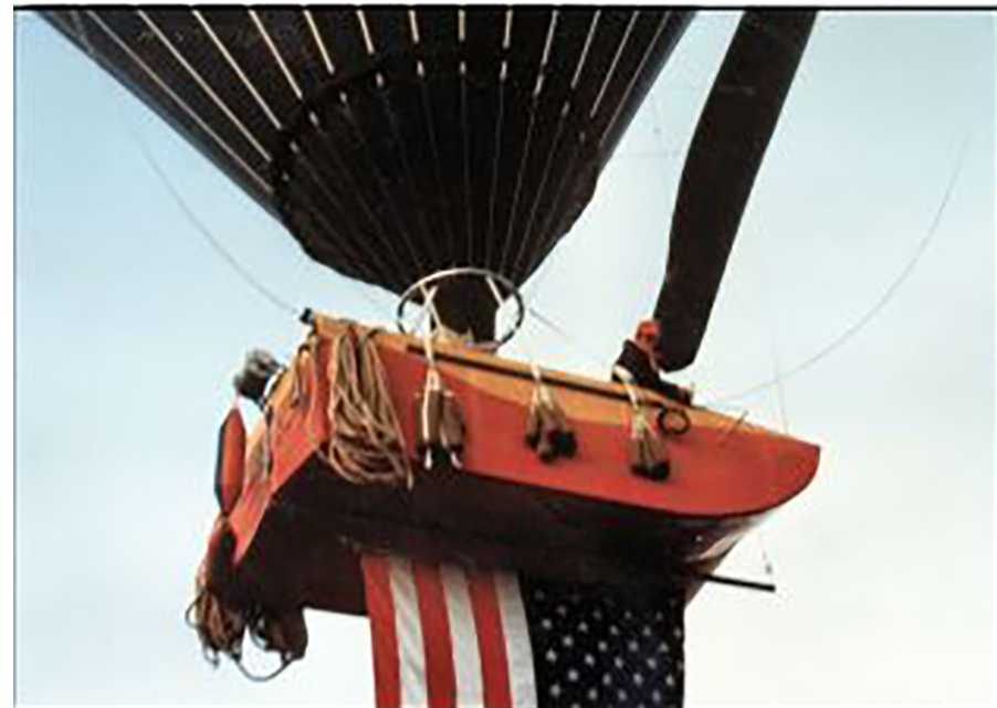 However, the balloon built by Ed Yost worked perfectly and the boat-like gondola built by Reinhard also worked perfectly. “Several other balloons, in the 15 attempts before ours had failed and cost people their lives, but Ed’s balloons—they never failed. That was why I chose Ed to build the envelope,” said Reinhard who put all avionics and other equipment in the balloon. “We tested the gondola to see if it would float and yes it did, which saved our lives.”