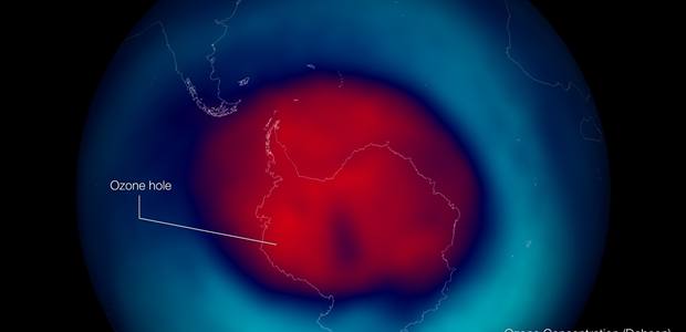 The Antarctica ozone hole was 9.3 million square miles (24.1 million square kilometers), in September 2013 and 2014. Photo credit: NOAA